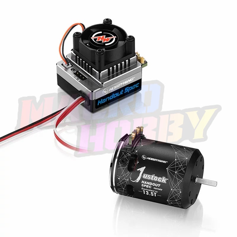 The Hobbywing XR10 Justock Handout Combo features a 60A ESC paired with a 21.5T 2100kV motor, delivering reliable and consistent performance for controlled racing environments. Ideal for spec-class competition, this sensor-based system offers smooth throttle response and simplified rules-compliant setup. Features Official handout combo for spec-class racing ESC delivers consistent 60A continuous and 380A peak current 21.5T brushless motor with 2100kV output for smooth and efficient performance Sensored design ensures precise throttle and braking control Built for reliability and consistency across controlled racing conditions Specifications ESC (XR10 Justock Handout) Continuous/Peak Current: 60A / 380A Input Voltage: 2S LiPo Dimensions: 40.9 x 33.9 x 32.1mm Weight: 75.4g (with wires) Motor (13.5T Handout Motor) Turns / KV Rating: 31.5T / 2100kV Input Voltage: 2–3S LiPo Dimensions: 36mm diameter x 48.5mm length Shaft Diameter: 3.175mm Weight: 147g Includes 1 x Hobbywing XR10 Justock Handout ESC (60A) 1 x Hobbywing Justock Handout 21.5T 2100kV Motor Important Notes Designed specifically for handout and spec-class race formats Compatible with sensored systems for refined control and racing consistency