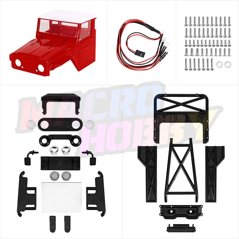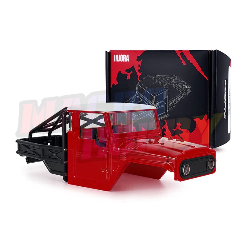 INJORA IR40-24 Half Truck Hard Body with Cage for 1/24 SCX24 Note: Only compatible with SCX24 C10, Jeep Wrangler, Bronco, Base Camp and 4Runner Compatible with stock SCX24 chassis Compatible with INJORA SCX24 Universal LCG chassis, not compatible with other LCG chassis Features: ABS hard plastic half-truck body with a classic retro off-road look Front clipless mount and rear hook-and-loop hinge for quick and easy body removal Features scale details including rock sliders, back cage, clear windows, side mirrors, and a front grille for added realism Comes with a magnetic mount to fit the body on the stock SCX24 chassis Specifications: Part Number: IR40-24 Material: ABS Plastic Color: Grey, Red, Blue, Sandy Taupe, Muted Green Wheelbase: 133mm Size: 188×68.5×64.5mm Weight: 61g Package List: 1×IR40-24 Body Kit 1×Front & Rear Led Light 1×Body Assembly Manual