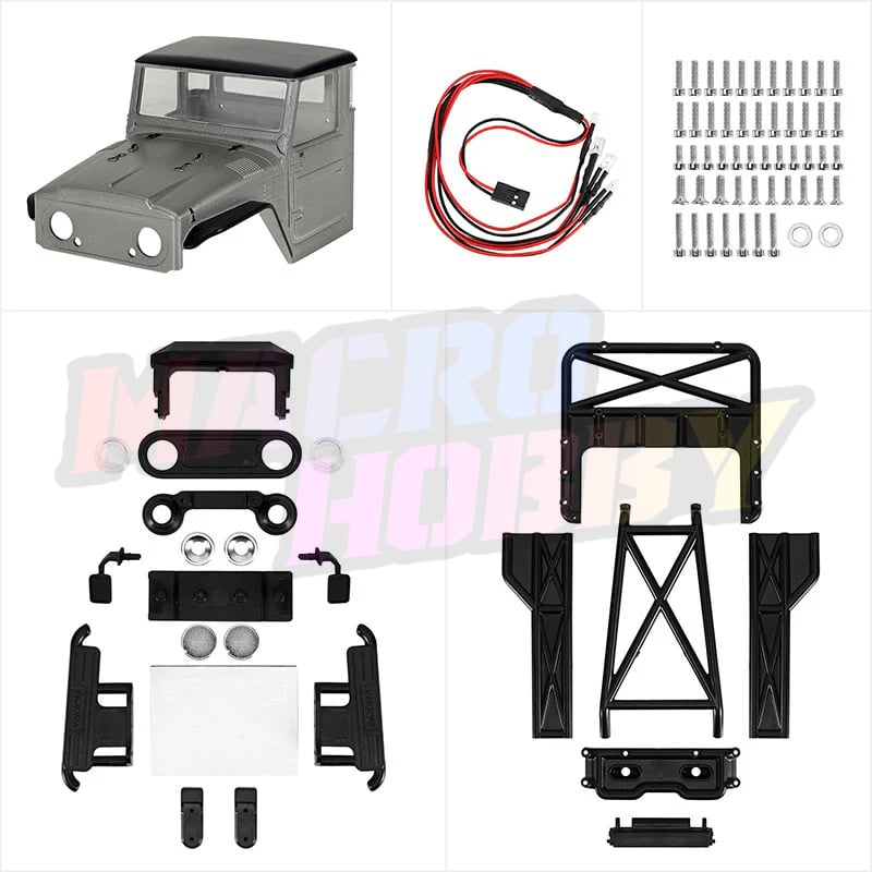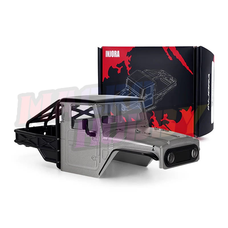 INJORA IR40-24 Half Truck Hard Body with Cage for 1/24 SCX24 Note: Only compatible with SCX24 C10, Jeep Wrangler, Bronco, Base Camp and 4Runner Compatible with stock SCX24 chassis Compatible with INJORA SCX24 Universal LCG chassis, not compatible with other LCG chassis Features: ABS hard plastic half-truck body with a classic retro off-road look Front clipless mount and rear hook-and-loop hinge for quick and easy body removal Features scale details including rock sliders, back cage, clear windows, side mirrors, and a front grille for added realism Comes with a magnetic mount to fit the body on the stock SCX24 chassis Specifications: Part Number: IR40-24 Material: ABS Plastic Color: Grey, Red, Blue, Sandy Taupe, Muted Green Wheelbase: 133mm Size: 188×68.5×64.5mm Weight: 61g Package List: 1×IR40-24 Body Kit 1×Front & Rear Led Light 1×Body Assembly Manual