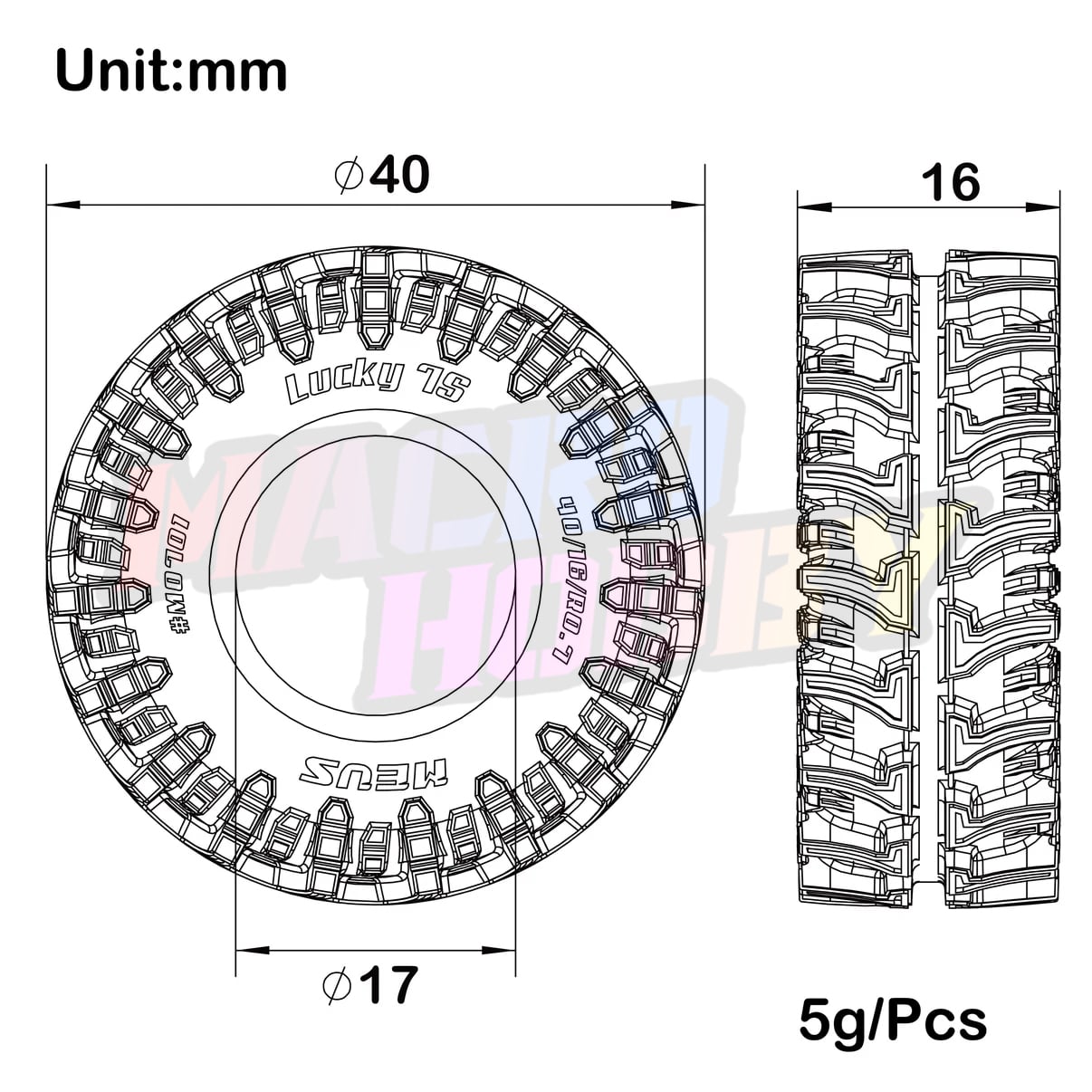 4. These 0.7-inch tires #M0701 comes with size of 40/16/R0.7, great for most 0.7 beadlock wheels.