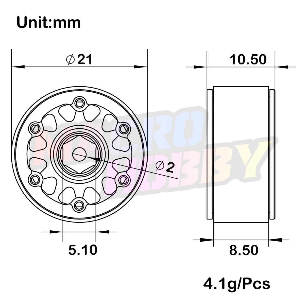 MEUS Racing 0.7-inch Beadlock Wheels Rims Deep-Dish Wheel for 1/30 Axial SCX30 1/32 Redcat Ascent-32 RC Crawler Upgrades. The hex hub adapter in the package is for the Axial SCX30 crawler, while the Redcat Ascent-32 Redcat Ascent-32 and other micro cralwers using 5mm hex adapter does not require the adapter for installation Key Features: 1. CNC machined, scale finish, anodized with exquisite appearance. 2. Beadlock design effectively prevents tires from falling off while driving, meanwhile requires no glue work. 3. Made of aluminum, 4.1g/Pc to provide enough weight for your RC Crawlers, ensuring greater driving stability. 4. The hex hub adapter in the package is for the Axial SCX30 crawler, while the Redcat Ascent-32 Redcat Ascent-32 and other micro cralwers 5. Using a 5mm hex adapter does not require the adapter for installation 6. Suitable for 1/30 Axial SCX30, 1/32 Redcat Ascent-32 RC Crawler. Specifications: Wheels and rims materials: Aluminum alloy Weight: 4.1g/pc Package List: 4pcs × 0.7-inch wheels