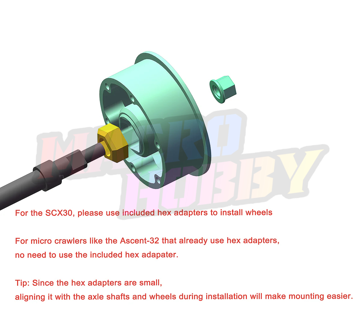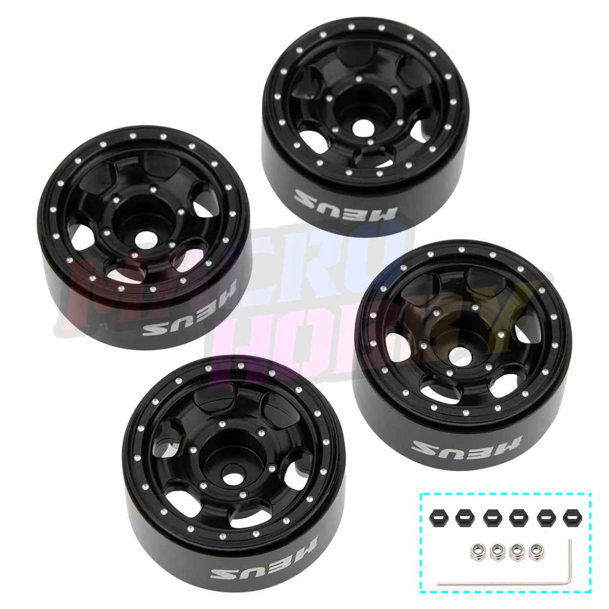 MEUS Racing 0.7-inch Beadlock Wheels Rims Deep-Dish Wheel for 1/30 Axial SCX30 1/32 Redcat Ascent-32 RC Crawler Upgrades. The hex hub adapter in the package is for the Axial SCX30 crawler, while the Redcat Ascent-32 Redcat Ascent-32 and other micro cralwers using 5mm hex adapter does not require the adapter for installation Key Features: 1. CNC machined, scale finish, anodized with exquisite appearance. 2. Beadlock design effectively prevents tires from falling off while driving, meanwhile requires no glue work. 3. Made of aluminum, 4.1g/Pc to provide enough weight for your RC Crawlers, ensuring greater driving stability. 4. The hex hub adapter in the package is for the Axial SCX30 crawler, while the Redcat Ascent-32 Redcat Ascent-32 and other micro cralwers 5. Using a 5mm hex adapter does not require the adapter for installation 6. Suitable for 1/30 Axial SCX30, 1/32 Redcat Ascent-32 RC Crawler. Specifications: Wheels and rims materials: Aluminum alloy Weight: 4.1g/pc Package List: 4pcs × 0.7-inch wheels