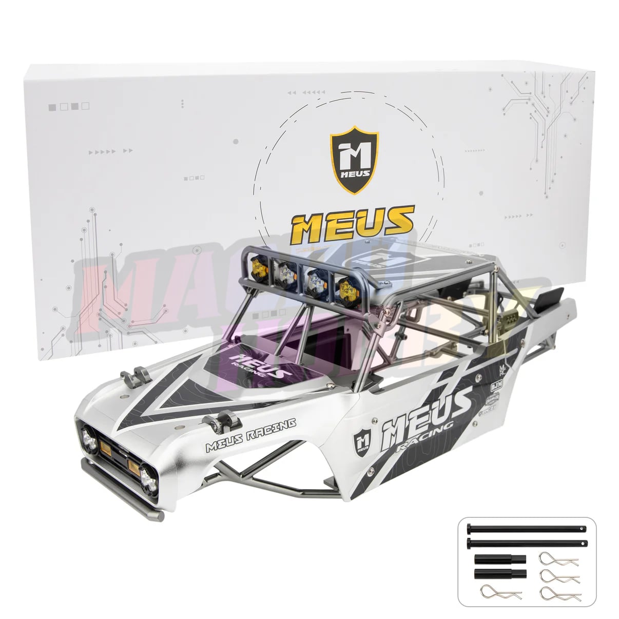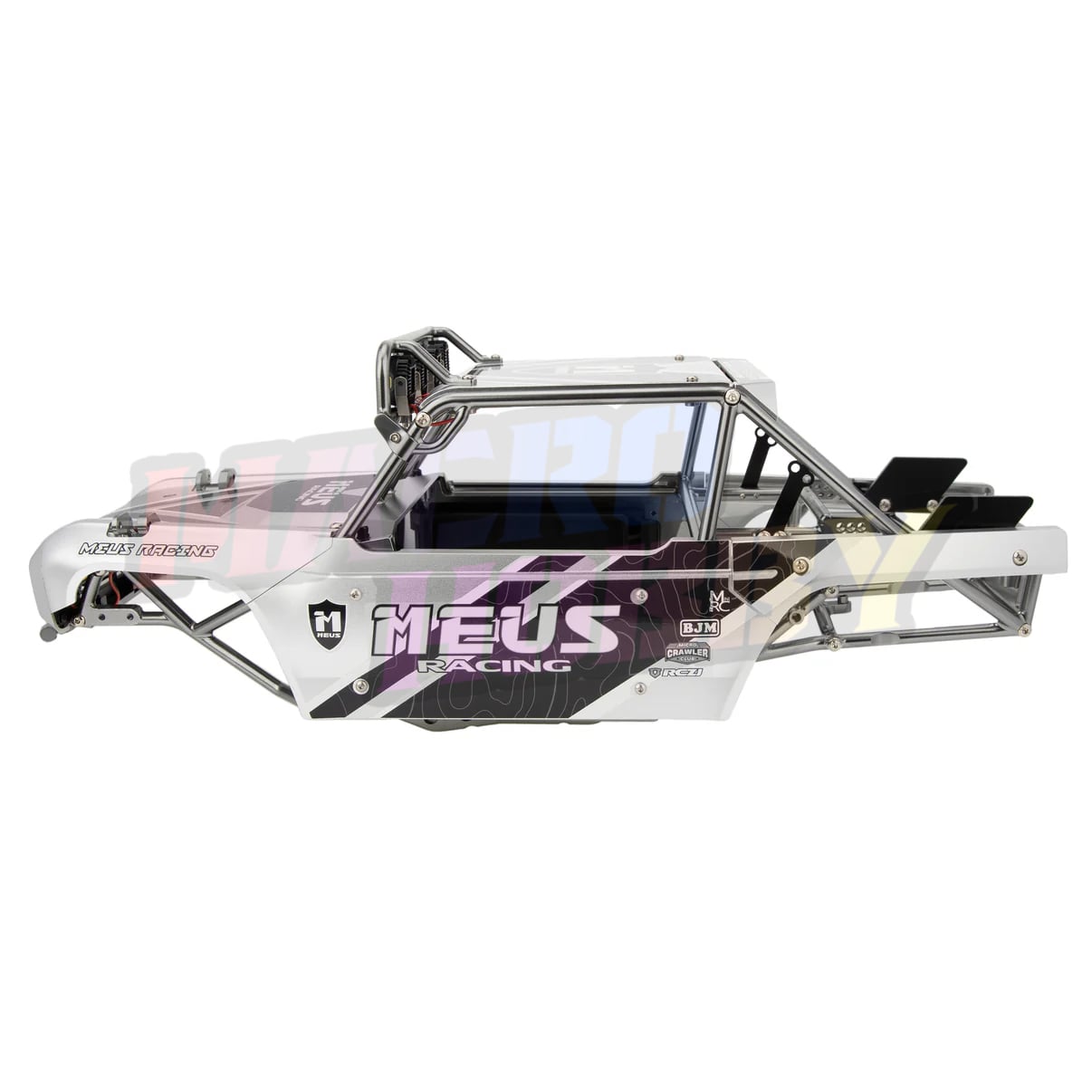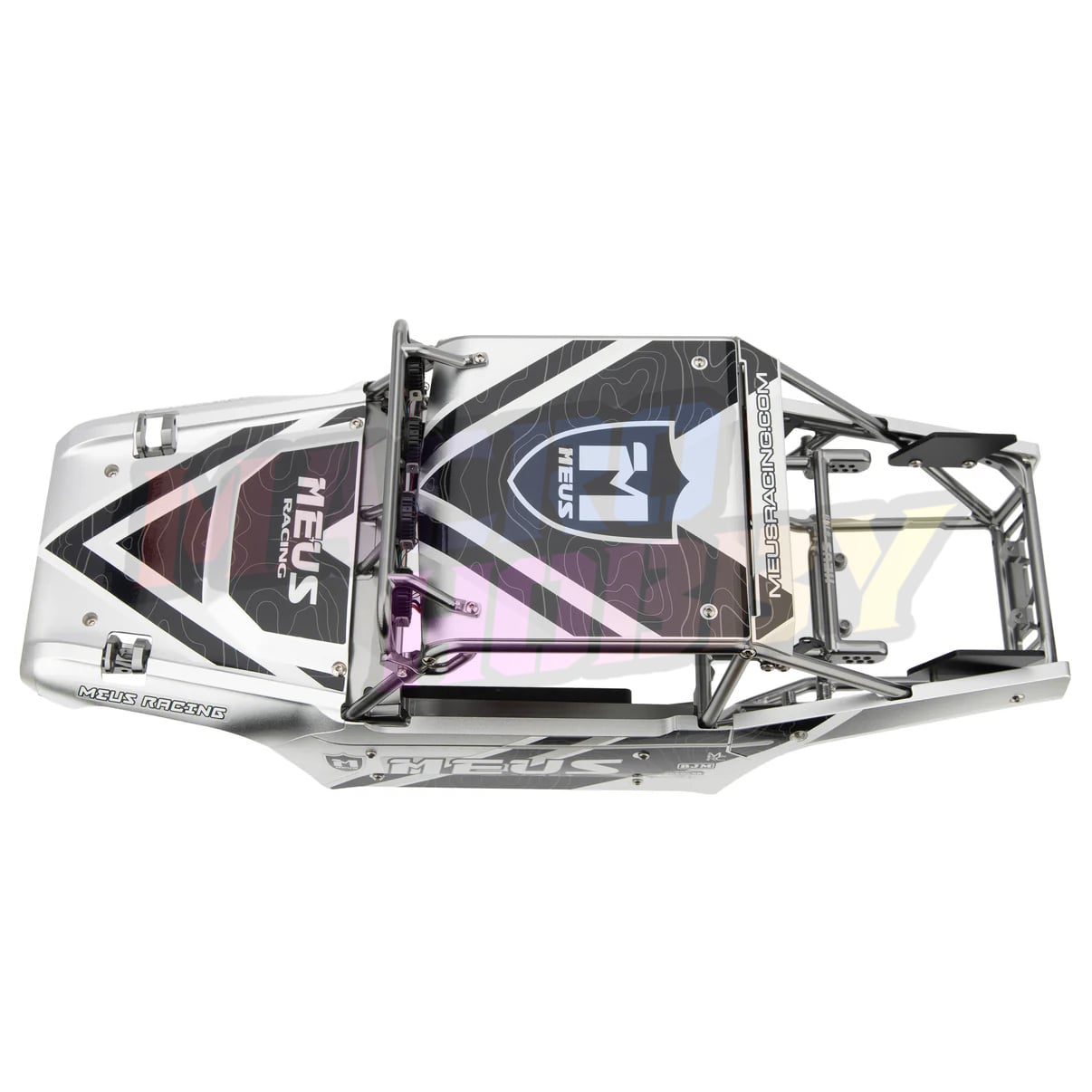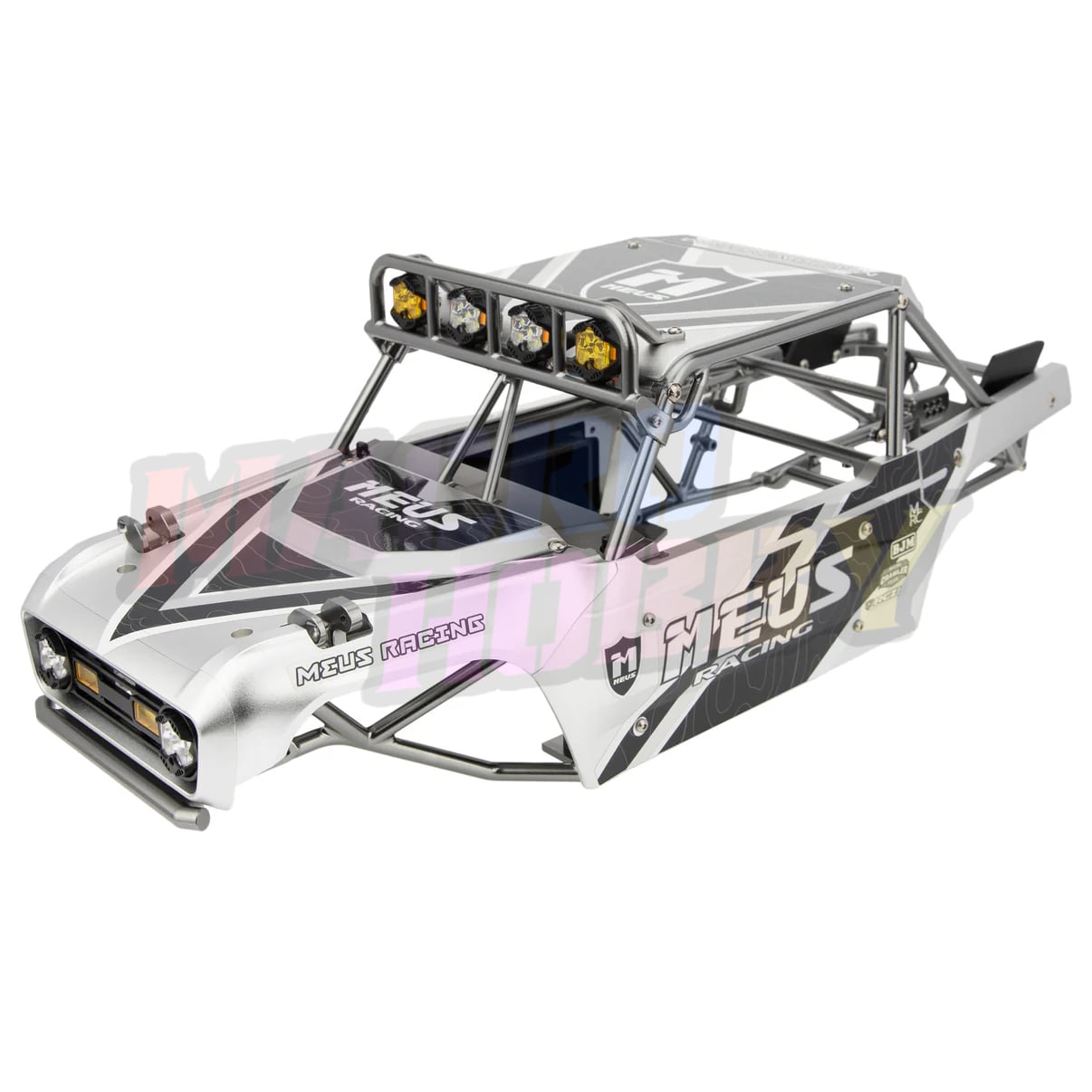 MEUS Racing V2 Aluminum Body & Cage Kit with Roof Lights for 1/10 Vanquish H10 OPTIC RC Crawler Silver Panels+Titanium Cage #520095