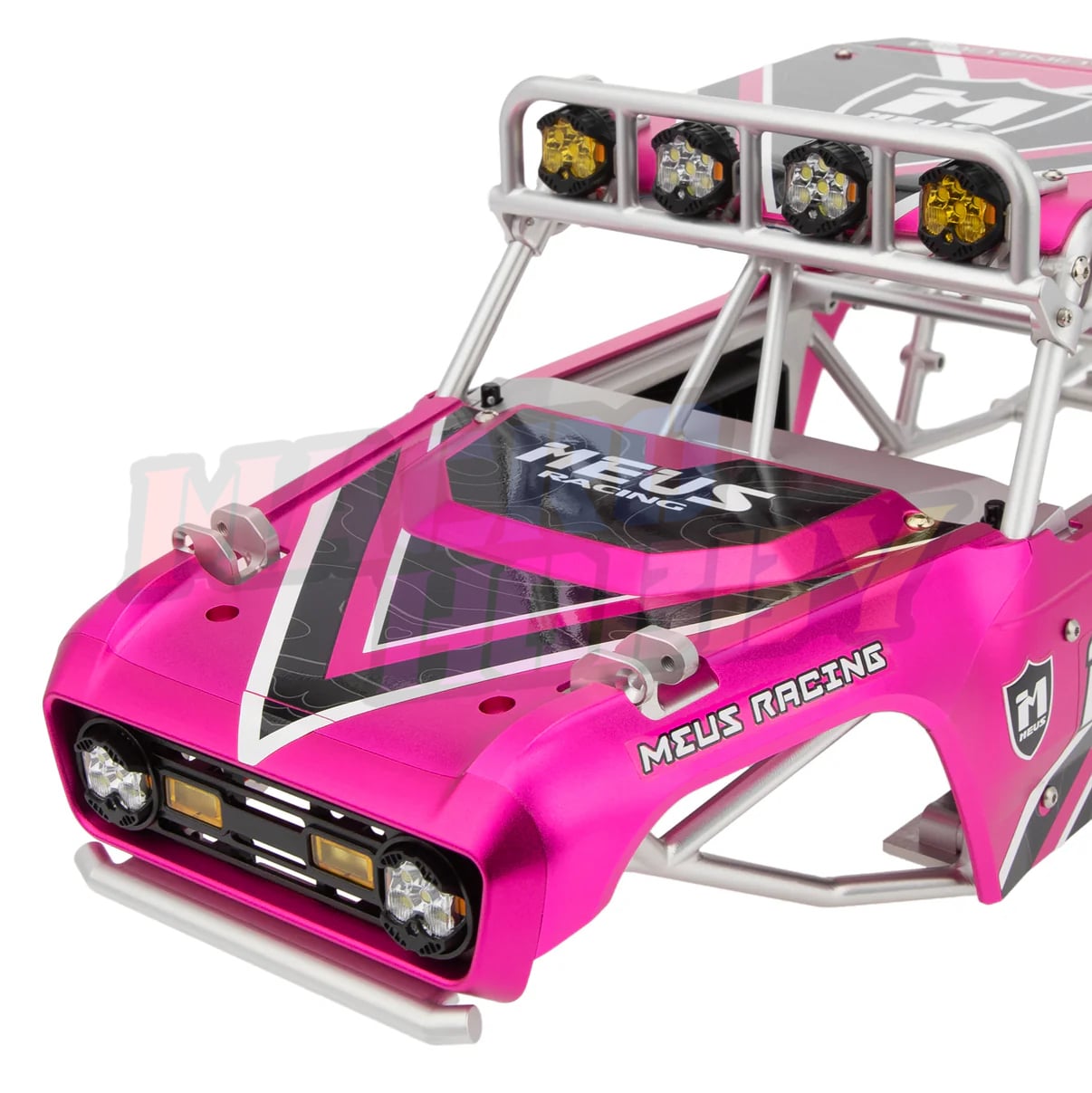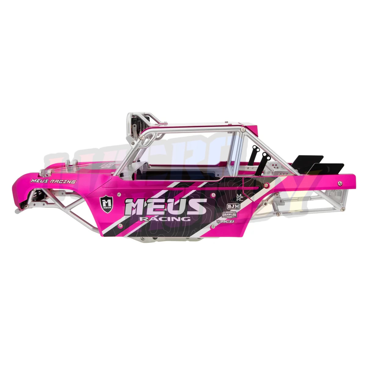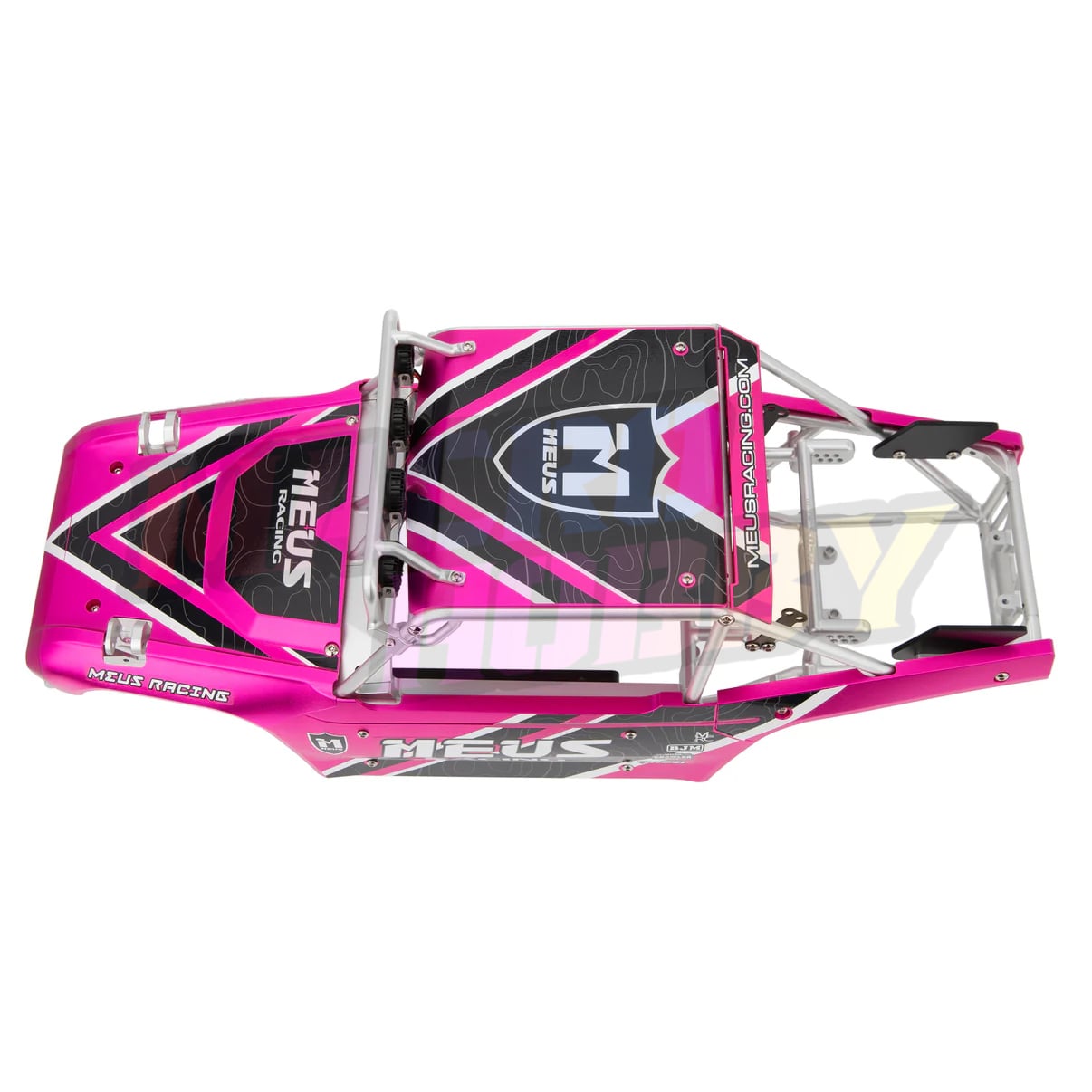 MEUS Racing V2 Aluminum Body & Cage Kit with Roof Lights for 1/10 Vanquish H10 OPTIC RC Crawler Pink Panels+Silver Cage #520098