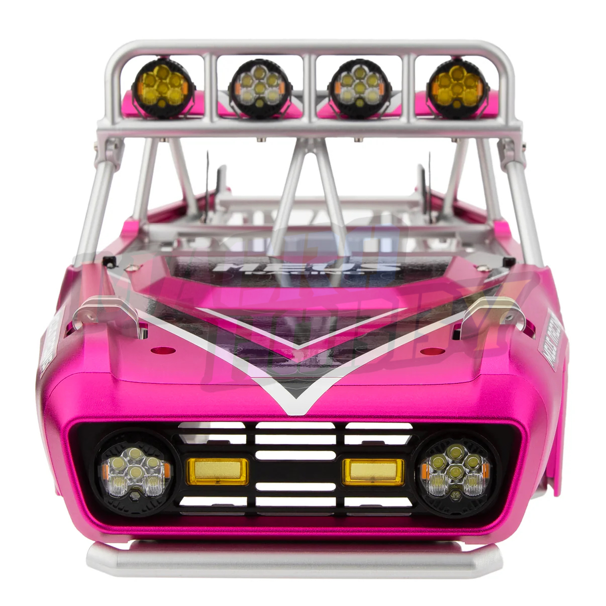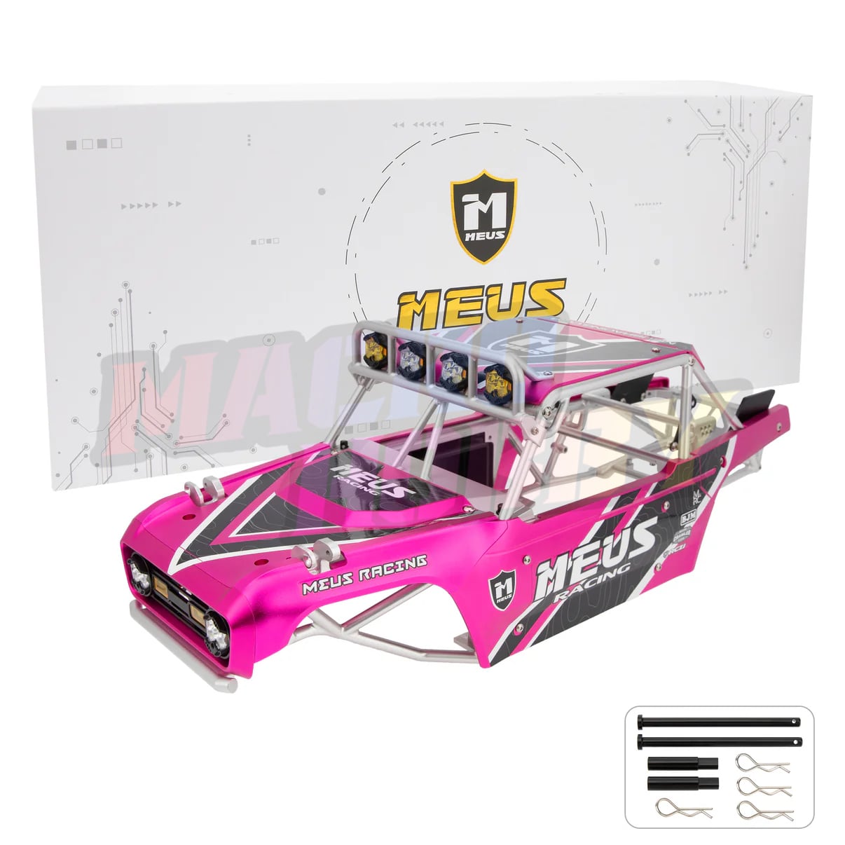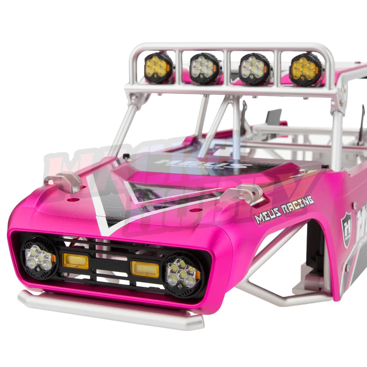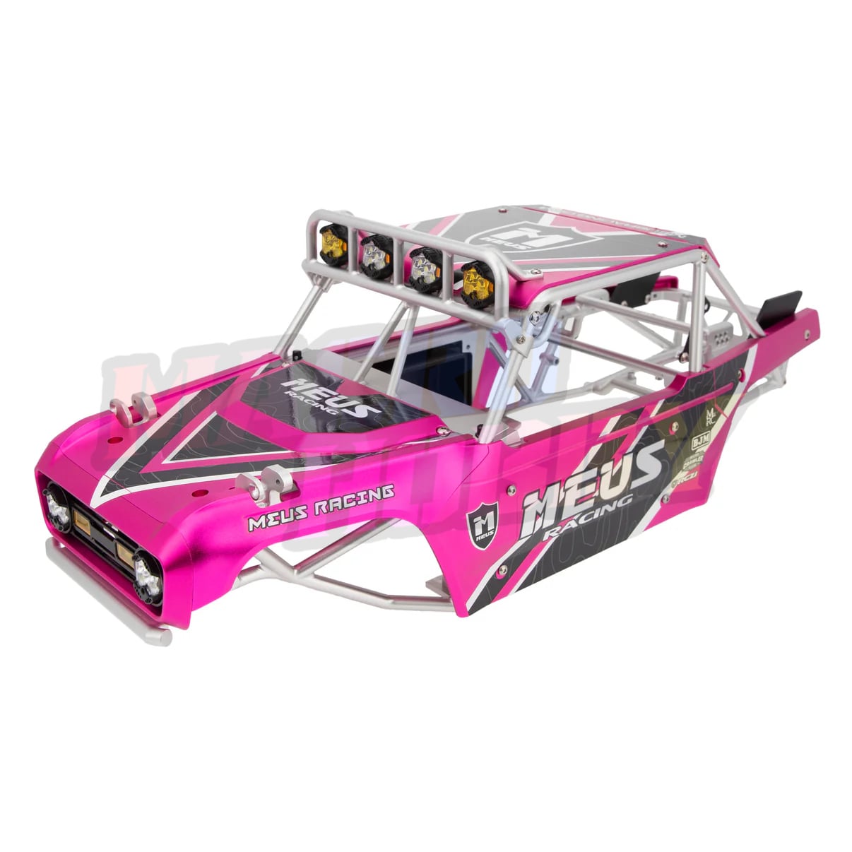 MEUS Racing V2 Aluminum Body & Cage Kit with Roof Lights for 1/10 Vanquish H10 OPTIC RC Crawler Pink Panels+Silver Cage #520098