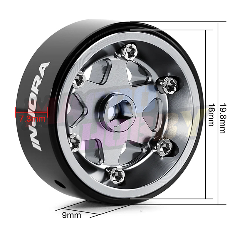 INJORA 0.7" D18 Aluminum 6-Spoke Beadlock Wheels for 1/30 Axial SCX30 (W7001)