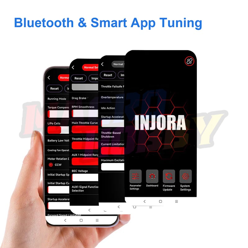 Wireless Bluetooth & Smart App Tuning: Built-in Bluetooth for easy adjustments—no extra devices needed! Enjoy real-time tuning, data logging, and firmware updates via the INJORA Link app. (iOS: Download from the App Store; Android: Get it on Google Play.)