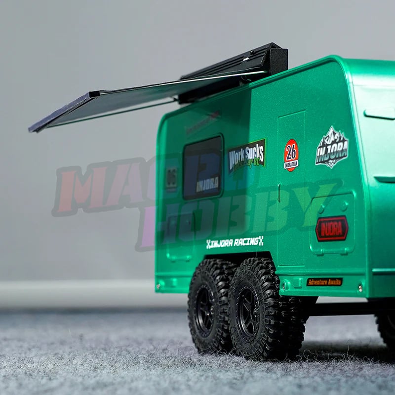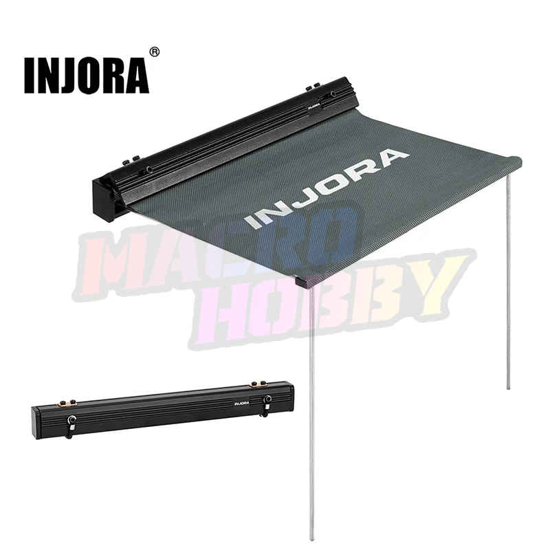 INJORA Scale Retractable Overland Awning for 1/18 1/24 RC Crawler Designed for 1/18 and 1/24 scale rigs, it is the perfect accessory for creating a true overland look. With CNC-machined aluminum housing and a durable fabric canopy, this awning delivers both scale accuracy and rugged detail. Features: CNC aluminum case with high-quality fabric canopy for durability Easily roll in and out, just like a full-size overland awning Includes rope buckle for secure storing and quick release The canopy features a printed INJORA logo on top when opened Adds an authentic off-road camping vibe to your 1/18 or 1/24 crawler setup Specifications: Material: Aluminum, Fabric Color: Black Weight: 34g Size: 123*100*102mm Package List: 1 * Scale Overland Awning