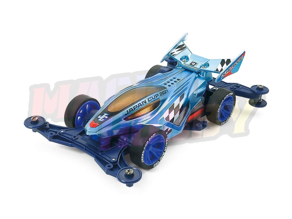 This is a limited-edition Mini 4WD race kit to commemorate Japan Cup 2021. It’s a special model of the Dual Ridge Jr., which features a new-molded polycarbonate body for the compact VZ chassis. VZ Chassis The VZ chassis is a compact and lightweight design that features reinforced designs for bumper, rear stay base and more ensuring that it has the durability and flexibility to withstand racing accidents. It is also a rather adaptable unit that lets its owner make numerous updates to the setup. Low friction 620 plastic bearings are molded in POM and maximize drive efficiency, while the chassis and A parts are molded in ABS. This chassis features a gear ratio of 3.5:1. ‧ Mini 4WD model assembly kit. Length: 158mm, width: 98mm. ‧ Clear polycarbonate body for a lighter car and high performance. ‧ Blue polypropylene A-spoke wheels are paired with black super-hard, small diameter low-profile tires with white sidewall print of J-cup 2021 logo. ‧ Low-friction plastic bearings. ‧ Dedicated clear stickers included. ‧ Type 130 motor is included. The model features a 3.5:1 gear ratio. ‧ Two AA batteries are required (sold separately). Parts Description