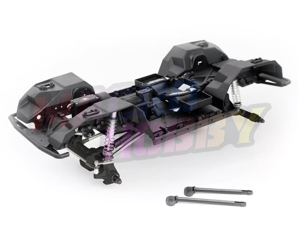 The VS4-10 steel C-channel chassis balances scale realism with trail-ready strength, reinforced by molded cross members and a machined aluminum pan-hard mount. Molded inner fenders double as adjustable shock towers, pairing perfectly with the included Incision 90mm S8E shocks for smooth articulation and tuning flexibility. Stainless steel links and pivot hardware add durability, while the 3-link front suspension with pan-hard maintains scale accuracy without sacrificing performance.